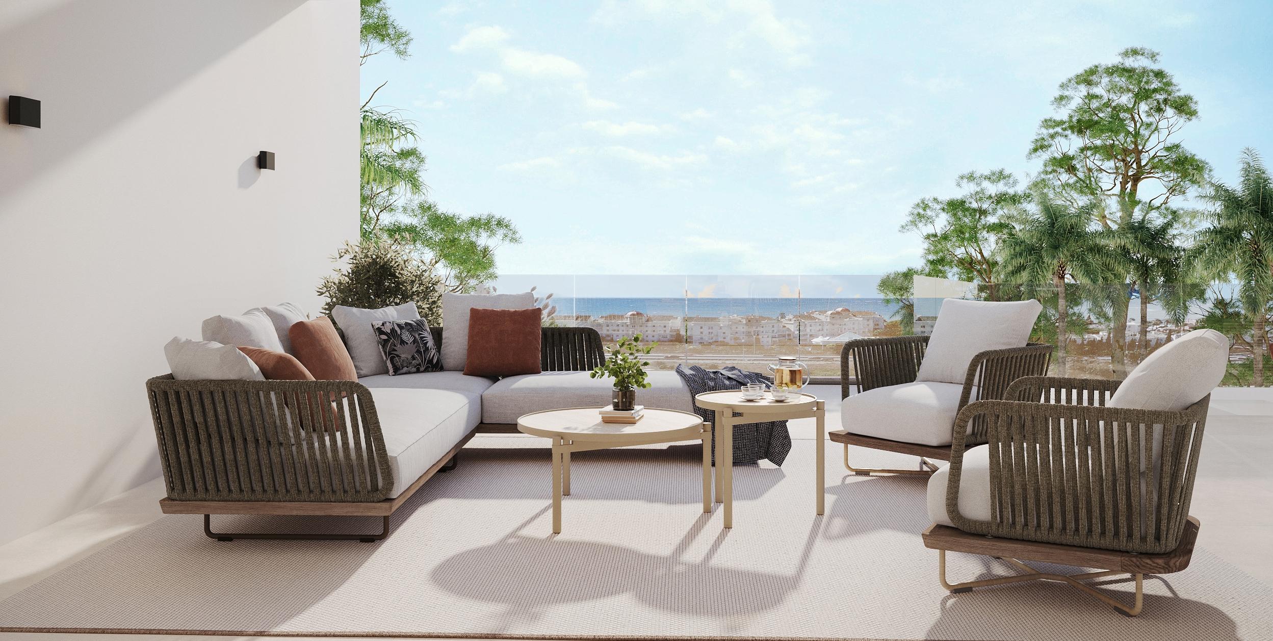 Royal Park Residence is a brand-new residential development in the heart of the New Golden Mile, nestled between Marbella and Estepona. These 2 - and 3-bedroom apartments are located within a serene gated community